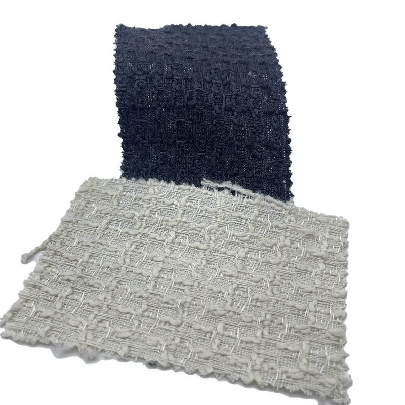 این پارچه که به عنوان ماده 3786 نامگذاری شده است، یک پارچه توید است که از 10٪ پشم و 90٪ الیاف دیگر تشکیل شده است. با جرم در واحد سطح 500 گرم در متر، ساختاری با وزن متوسط تا سنگین ارائه می دهد. سطح دارای یک الگوی چک سیاه و سفید است که با فرآیند برجسته سازی بهبود یافته است. این تکنیک یک بافت برجسته در مناطق خاصی از شبکه ایجاد می کند و جلوه ای سه بعدی به طرح هندسی می بخشد. ترکیب پشمی به تنظیم حرارتی پارچه و حفظ شکل آن کمک می کند. این تکنیکهای ساخت منجر به ایجاد مادهای با عمق بصری و یکپارچگی ساختاری میشود که آن را برای پوششهایی که بافت سطح و تعریف الگوی مورد نیاز است قابل استفاده است.