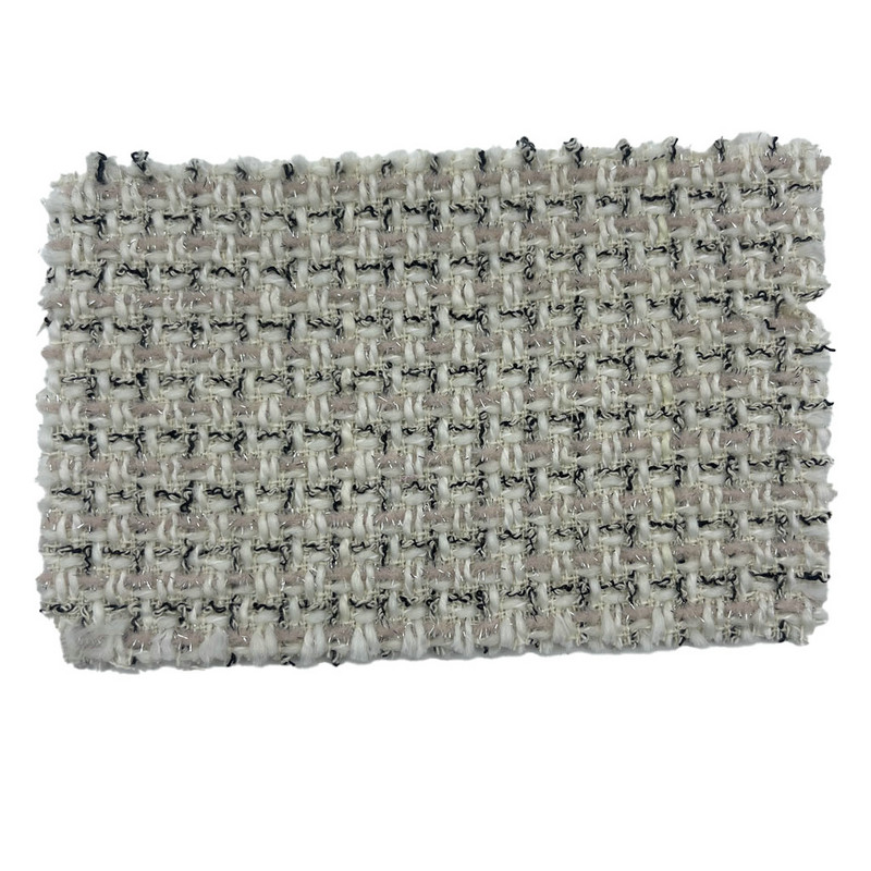 این پارچه که به عنوان ماده 23523 نامگذاری شده است، یک پارچه توید است که از 78% پلی استر، 12% پشم و 10% پنبه تشکیل شده است. با جرم در واحد سطح 440 گرم در متر، ساختاری با وزن متوسط مناسب برای لباس ارائه می دهد. پایه صورتی روشن دارای یک الگوی چک است که با نخ فلزی در طول فرآیند بافندگی یکپارچه شده است. این ترکیب کنتراست هم در ظاهر بصری و هم در بازتاب نور ایجاد می کند. ترکیب پلی استر، پشم و پنبه به ثبات ابعادی پارچه، تنظیم حرارتی و مدیریت رطوبت کمک می کند. این ویژگیهای فنی باعث میشود که این توید برای لباسهای مد که در آنها تعریف الگو و عملکرد مواد مورد نیاز است، قابل استفاده باشد.