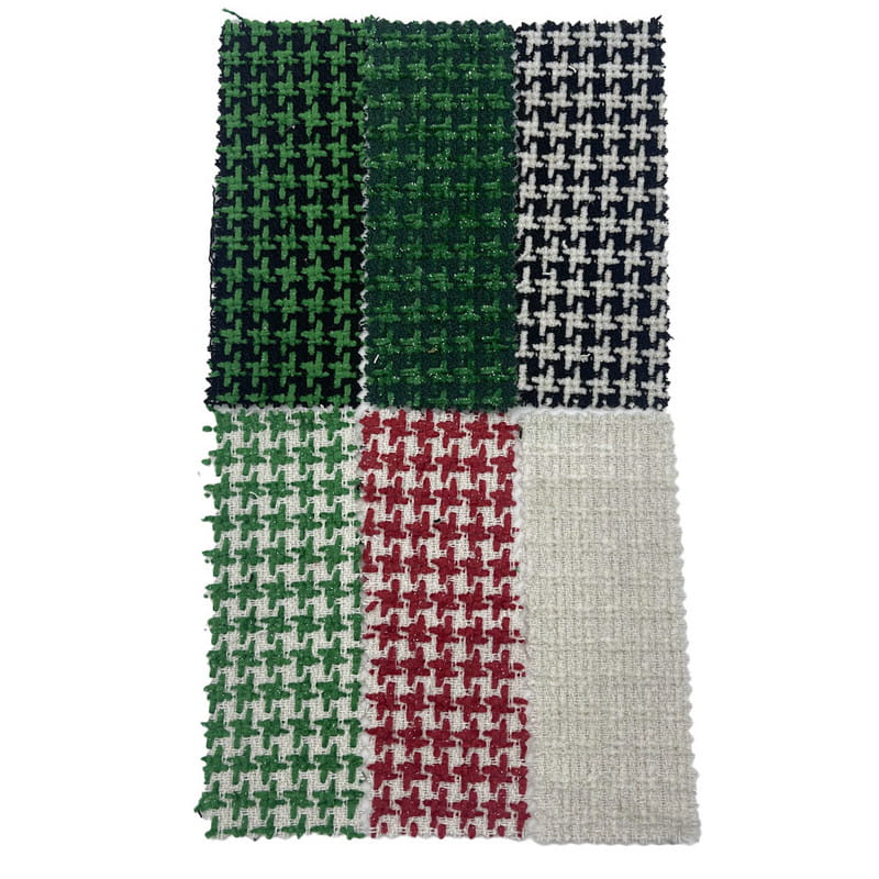 این پارچه با نام ماده 2410 منسوجات ژاکاردی است که 100% از الیاف دیگر تشکیل شده است. با جرم در واحد سطح 550 گرم در متر، ساختار سنگینی را ارائه می دهد. سطح، نخ فلزی را با تکنیک برجسته سازی ترکیب می کند و یک الگوی برجسته ایجاد می کند که هم ویژگی های بصری و هم ویژگی های لمسی را تغییر می دهد. فرآیند بافت ژاکارد امکان ادغام دقیق عناصر فلزی را در طرح فراهم می کند. این روش تولید منجر به پارچه ای با بافت مشخص و کیفیت انعکاس نور می شود. وزن مشخص شده به دوام و یکپارچگی ساختاری مواد کمک می کند. این ویژگی های فنی باعث می شود که این پارچه ژاکارد برای تولید اسباب بازی در جایی که علاقه بصری و انعطاف پذیری مواد مورد نیاز است قابل استفاده باشد.
